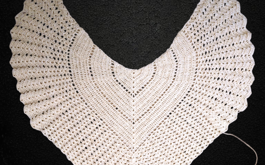 In the cream-gold color scheme, it was created from a special combination of 3 strands of merino-acryl yarn with moher thread adding fluffiness and gold thread adding angelicity.